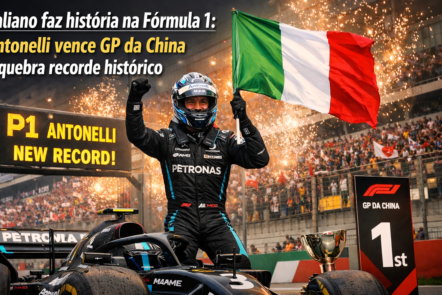 Italiano faz história na Fórmula 1: Antonelli vence GP da China e quebra recorde histórico